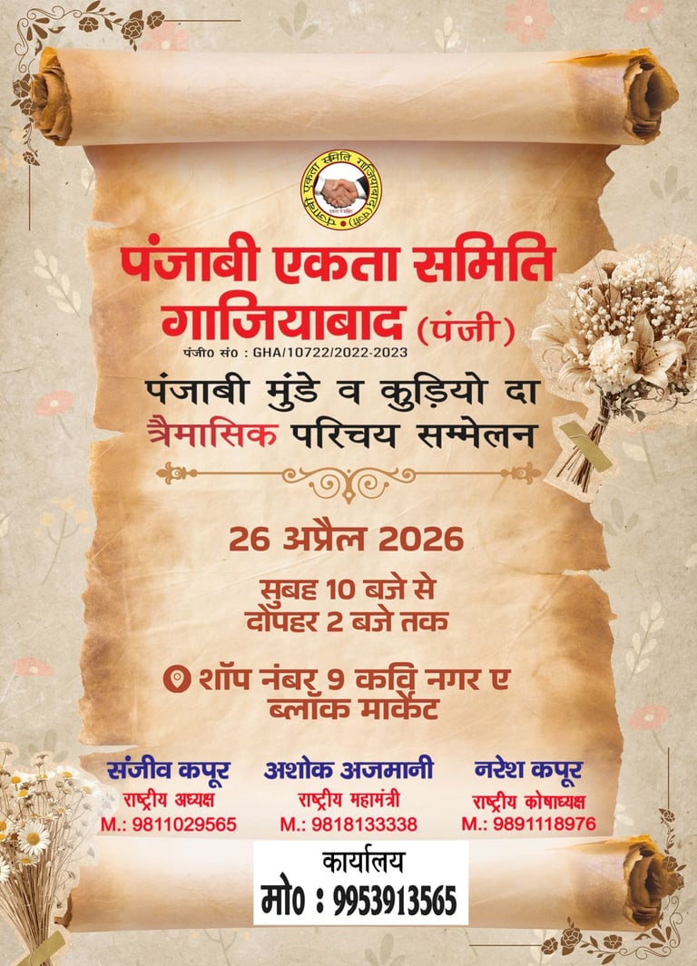 Punjabi Ekta Samiti is a community-driven initiative dedicated to fostering unity, harmony, and cultural pride among Punjabis worldwide. Established with the vision of bringing people together, it serves as a trusted platform where individuals and families can connect, support one another, and celebrate the richness of Punjabi traditions. Our mission is to preserve the essence of our culture while creating opportunities for modern generations to engage, collaborate, and build lifelong relationships. Through social programs, cultural events, and a dedicated matrimonial platform, Punjabi Ekta Samiti strives to strengthen community bonds while encouraging progressive values.